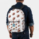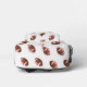Design features a white background to a pattern of footballs displayed throughout. Front pocket features the image of a goalpost with the initial you supply in center in an ocean-blue print.