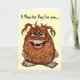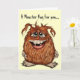 The cutest monster for this lovely greeting card.He is quite hairy but his big smile and gorgeous blue eyes are irresistible. He has a brown fur and red lips, big white teeth and big blue eyes...he is waiting for you... The card comes with the text "A monster hug for you" but you can customize it if you like. Text, fonts and background color are fully customizable. To change the background color click on the "customize it" button then "edit" From my original painting ink and watercolor on paper