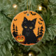 🌕🐱 Cute Moonlit Cat & Pumpkin Halloween Magic ✨ Ceramic Ornament