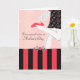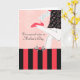 A cute Mothers Day card for sister with a woman in a floral black dress, gray polka dot gloves, red polka shoes and pink polka dot hosiery. Greeting card cover top is pink faded flowers, bottom has bow and red and black stripes. Feel free to add to or customize the provided cover and inside text.