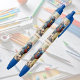 Very nice blue, or black ink pen. I will be buying more. The print was fine. I can easily see the print. The flowers look great.