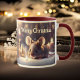 This cute Mug features a little mouse on a Christmas decorated table with glowing candles. The lights are dancing. A cute small Christmas gift for anyone! Text customizable.