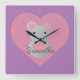 This clock is so cute! Loved that I could personalize it with my daughter’s name. She just got her big girl bed so we decorated with unicorns. I thought this would be good to have in her room. We are using it to help her learn how to tell time. She absolutely loves it! The color was just like the design on the website. Everything turned out just as I expected.