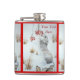 Well made flask, a little better than I had expected. Flask came in clear plastic box which gave it a nice presentation when I took it out of the zazzle packaging. Image is not printed on flask but on sticker. Don't know how this will hold up I haven't used it yet. This would make a Great gift! I plan to purchase more for friends! Cheers. I thought a little brighter than computer. Very crisp, writing wasn't