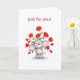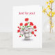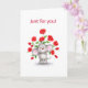 Very cute mouse holding a bunch of red roses behind him, just for you!