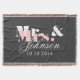 Cute Mr and Mrs throw blanket for newlywed couple. Grey white and pink colors. Romantic wedding gift idea for newly weds / just married groom and bride / husband and wife couple. Include wedding date.