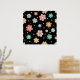A bright and cheerful pattern of cute flowers and spots in a multicolour palette.
