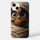 Cartoon mummy with funny big eyes, wrapped in bandages, a mix of cute and spooky for Halloween merch.
