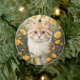 Cute Munchkin Cat And Buttercup Flowers Ceramic Ornament