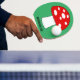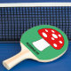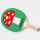 Personalized name or monogram ping pong paddle for table tennis. Sports game Birthday gift idea for men, women and kids. Cute red mushroom design with white spots. Custom green background color. Fun for player and coach. Funny nature inspired vector art logo.