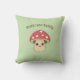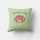 A green pillow with an illustration of a cute mushroom in cartoon style and customizable brown text above! Perfect to add a funny touch to your home or for a kids room decoration!