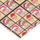 Cute, fun Mushroomcore Santa Christmas Mushrooms Tablecloth. The design shows a grid of mushrooms wearing santa hats with colorful background panels of mushroom, banana and dusky pink. Matching tableware and party supplies are available.
