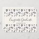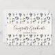 Flat graduation card with a musical themed design. A pattern with treble clef, bass clef and other musical symbols.