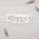 Mini business cards with a musical themed design. A pattern with treble clef, bass clef and other musical symbols.