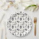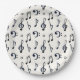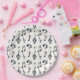 Paper plates with a musical themed design. A pattern with treble clef, bass clef and other musical symbols.