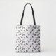 Tote bag with a musical themed design. A pattern with treble clef, bass clef and other musical symbols.