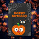 Cute n Spooky Cat and Pumpkin Halloween Birthday Card