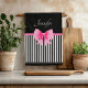 Cute Name Pink Ribbon Black White Stripes Pattern Kitchen Towel