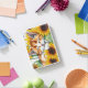 Cute cat themed personalized tablet cover. An adorable ai watercolor illustration of a little white and orange kitten taking a nap in a bunch of sunflowers. Add this sweet, cozy décor into your space to induce a relaxing environment.