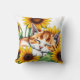 Cute Napping Kitten and Sunflowers Throw Pillow