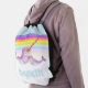 Cute narwhal mother and baby rainbow drawstring bag