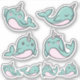 Cute Narwhal illustrations. These fun designs feature happy underwater pink and teal narwhals.