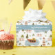 Add a nautical touch to the birthday party or baby shower of your little boy with this adorable custom boat pattern wrapping paper. Gift wrap has lighthouses, boats, and a place for the text Captain and first name of your kid. Personalized text is on top of a blue background with a white ship anchor.