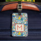This cute monogrammed luggage tag features a fun sea life pattern of ships, seagulls, sailboats, life preservers, lobsters and more in shades of red, white, blue and yellow. Personalize the monogram on the front with your initial and the back with your choice of special text.