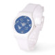 I only have one complaint. I ordered the watch with clear case and strap, and what was sent was white case and strap. I'm going to keep it because 1) it looks very nice in white, and 2) it would take too long to get a replacement made and sent in time for my occasion. Aside from the mix up with the color, the watch does look very good in white. The purple dial is actually sparkly which did not show in the online images. That was a nice surprise. If you like Swatch watches this is very similar to those. It's 33.6mm in diameter, 10.5mm thick, and 40.6mm lug to lug. Stainless steel case back says 3ATM/30m WR, so no swimming or showering or submerging this one. If you like Woodstock, this is a great choice.