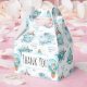 Small favor box with a whimsical pattern featuring cute smiling whales happily swimming in the sea.