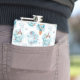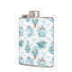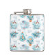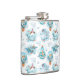 A flask with a whimsical pattern featuring cute smiling whales happily swimming in the sea.