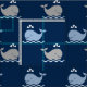 Cute Navy Blue and Gray Nautical Whales Pattern Fabric