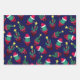 Cute Navy Decorated Cactus Tree Christmas Lights Wrapping Paper Sheets