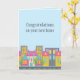 "Congratulations on your new home" cards for real estate marketing. Great for buyers at closing. The design features a cute urban neighborhood on a light blue background. Perfect for residential realtors, mortgage lenders, title agencies, home inspection services, etc.