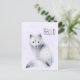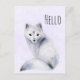 A postcard with a watercolor image of a white fox with fancy blue flora designs all over its fur.