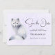 Christmas save the date card with a watercolor image of a white fox with fancy blue flora designs all over its fur.