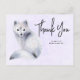 Thank You postcard with a watercolor image of a white fox with fancy blue flora designs all over its fur.