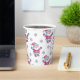 These cute paper party cups have a repeating pattern of a Nordic or Scandinavian style Santa Claus and blue snowflakes. The images are placed on a white background. Your custom text is in matching red and blue on a circle banner. Festive for the Christmas Season!