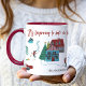 Mug gift 'it's going to look a lot like Christmas' in style with our modern festive Christmas Cute red and green Alpine ski lodge cosy chalet village with skiing people and children winter fun for Christmas Holiday in nature with white snow invitation. Original artwork by Caroline Bonne Müller