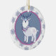 This is a cute personalized Christmas ornament to give to a son, daughter, or a grandchild. The front features an adorable nordic style reindeer image at the center. The image is done in colors of blue, violet pink, and white, and placed on a blue gray background that is framed in matching pink. The framed image is then placed on a matching blue and white snowflake background. The back of the ornament has the same snowflake frame with your custom text at the white circular center. Make it say whatever you'd like! This design works equally well for a boy or a girl.