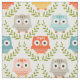 Cute fabric featuring assorted colorful owls and laurels. Coordinating fabric available in the shop.