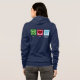 Durable, warm, comfortable. Zipper is a bit heavy, should have been nylon, but functions as it should otherwise. Color on front could have been bolder, but may be due to my font choice and frame choice. Seems to be holding up well despite multiple washings.