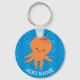A cute orange cartoon octopus. Baby animal key chains. Edit name to customize. Blue wave pattern version. Gift idea for kids.