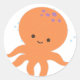 This adorable cartoon-style baby octopus sticker would make an excellent gift for kids of all ages. Its vivid colors and cute design will bring a smile to any child's face. The sticker features a smiling baby octopus, making it the perfect addition to any school notebook, laptop, or other surfaces.