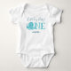 An outfit for your baby’s first birthday. The baby bodysuit color scheme is white and blue with the word "One" in large letters with a cute octopus illustration as the first letter of the word. Simply, customize this outfit, add it to your cart, and happy birthday to your wonderful baby!