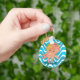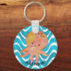 A cute orange cartoon octopus. Blue and orange watercolor design. Baby animal keychains. Edit name to customize. Gift idea for kids.