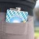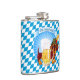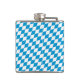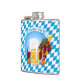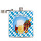 A cute dachshund sits behind a beer mug filled with German beer in this Oktoberfest flask design featuring the blue and white colors of the Bavarian flag.