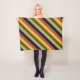 A small sized fleece blanket featuring a pattern design of multicolored diagonal stripes in olive green, sage green, hazelnut brown, navy blue, and banana yellow.