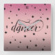 Add creative vibes to the nursery with this whimsical clock, which features a myriad of stars, near and far, twinkling against a tea rose pink sky background transitioning to grey, with the words "tiny dancer", set in elegant flowing script. Choose from square or circular clock shapes. Personalize as desired.