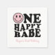 Cute one happy babe retro happy face 1st Birthday paper napkin.